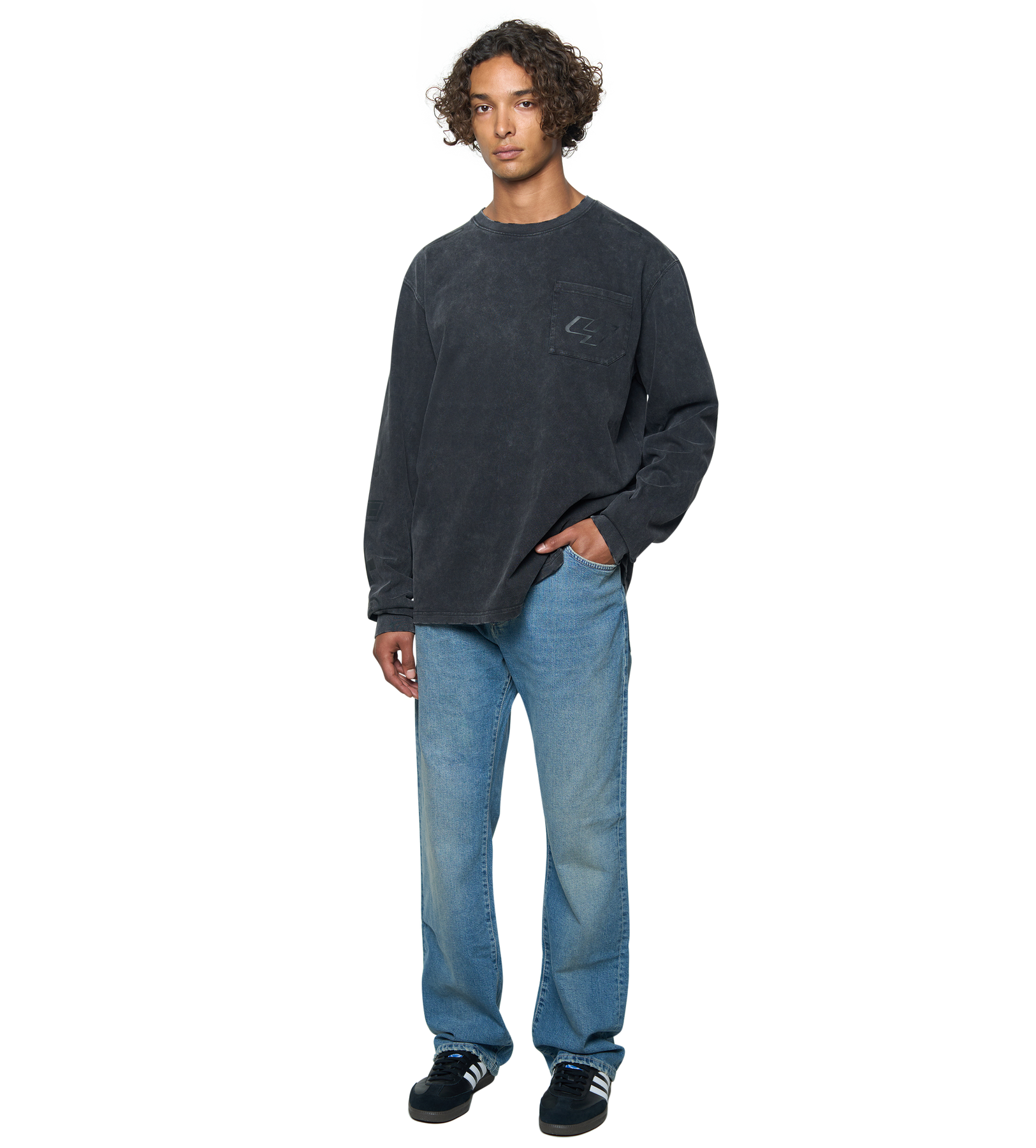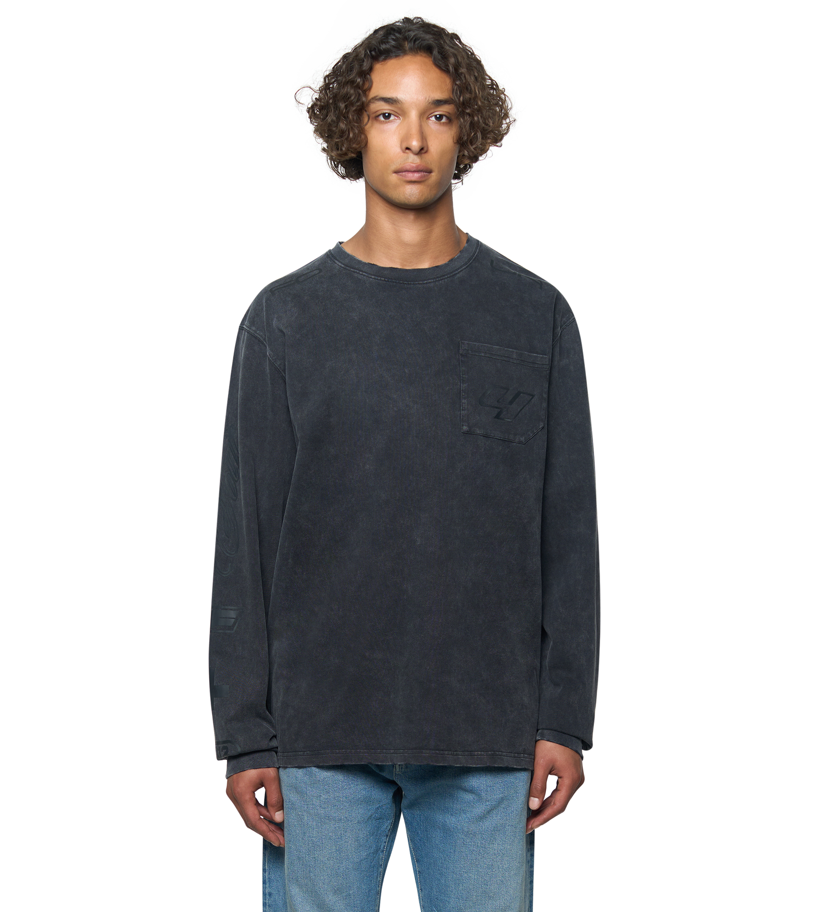 The Race Comp Longsleeve T-Shirt in washed black is crafted from 100% cotton single jersey at a substantial 280gsm weight, treated with a washed finish for a soft hand feel and lived-in look.