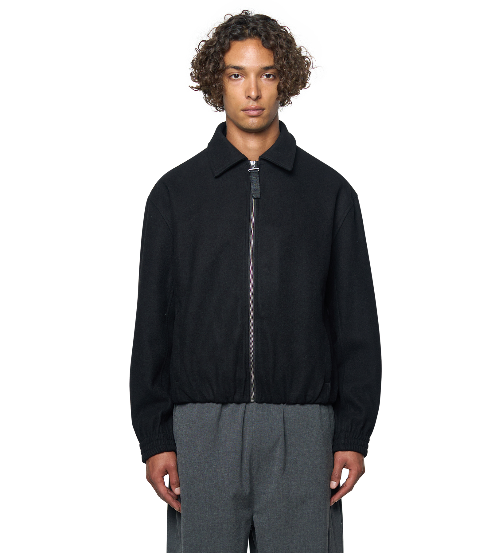 The Logo Wool Square Jacket in black combines streetwear aesthetics with functional comfort. Cut in a regular fit, it’s crafted from a nylon-spandex shell for a structured yet flexible feel, with a polyester lining and lightweight polyester padding for added warmth.