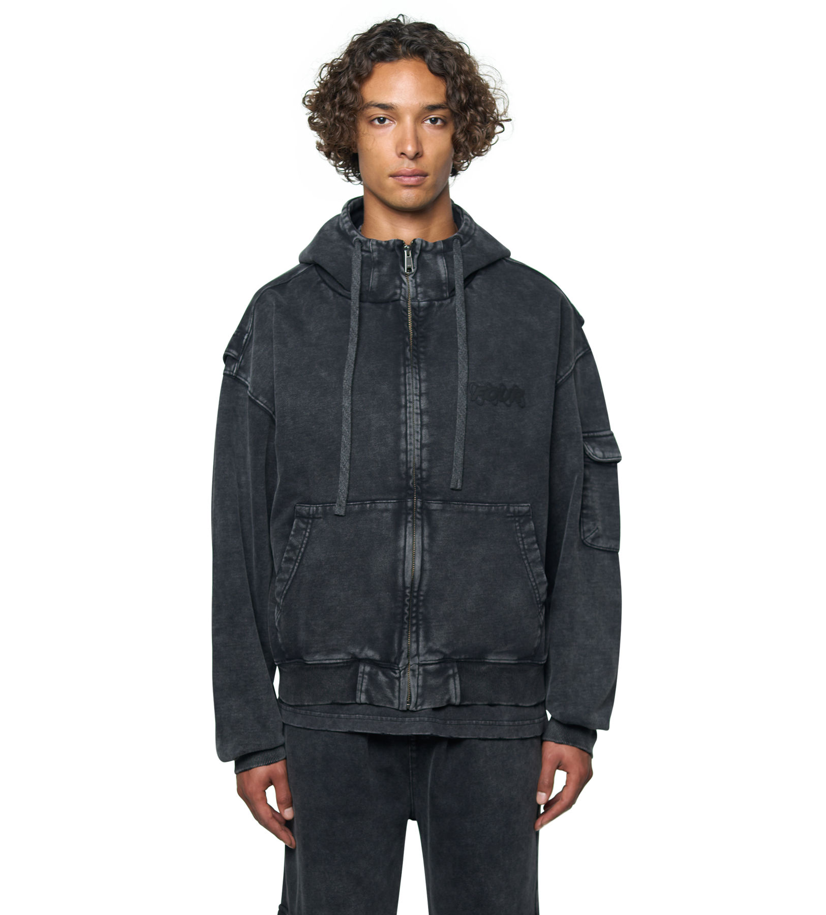 FOUR Circles Boxy Zip Up Hoodie Washed Black