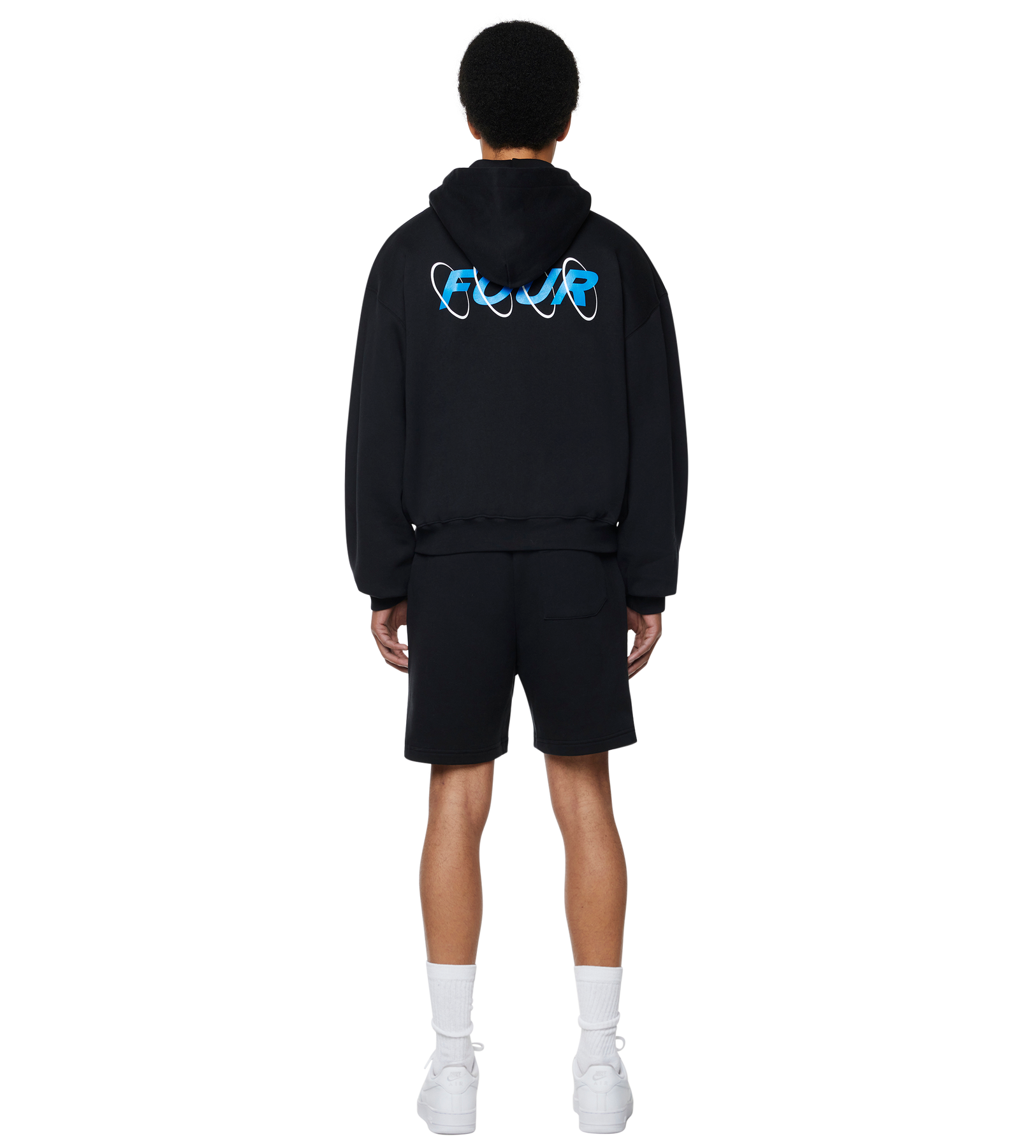 Circles Boxy Zip Up Hoodie Black/ Princess Blue