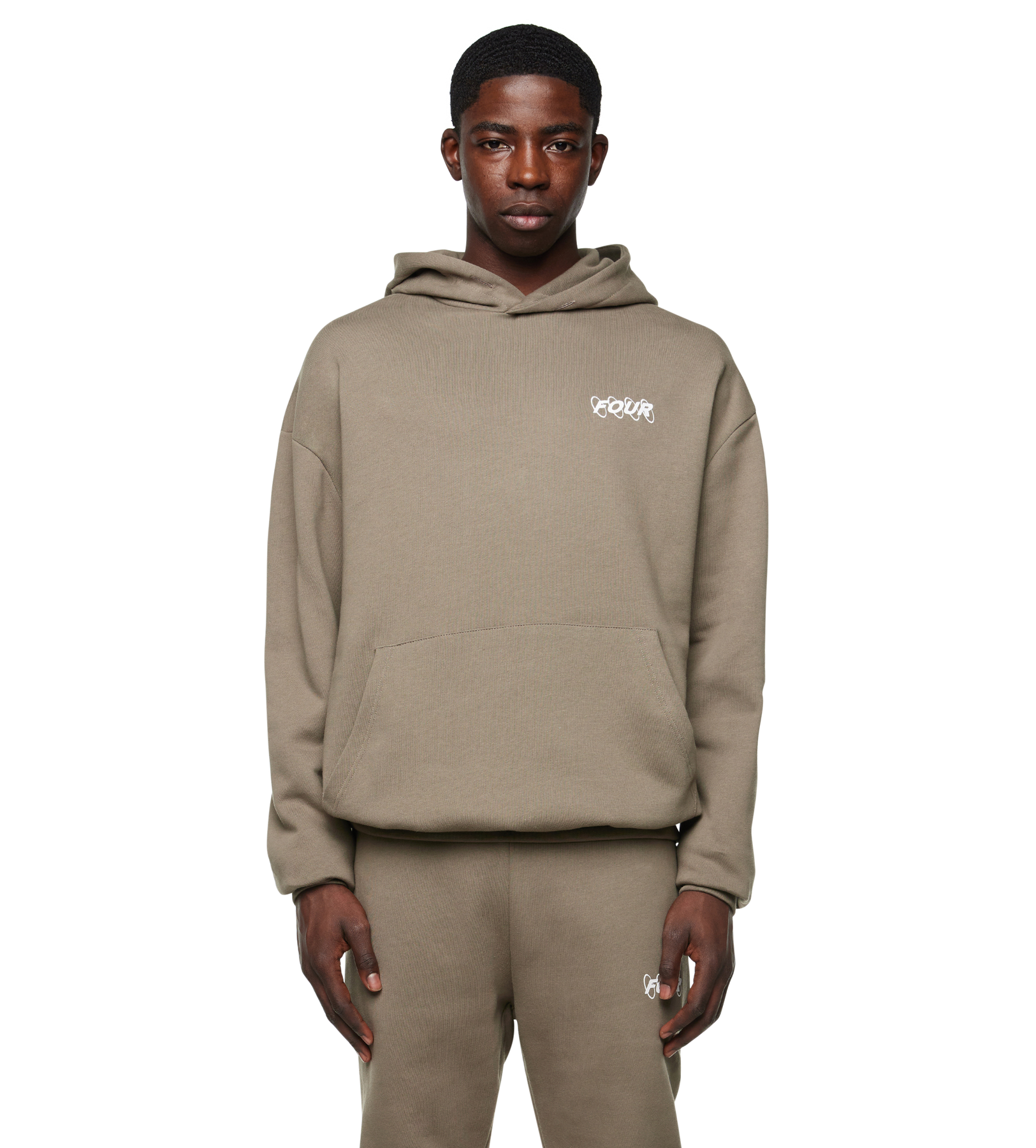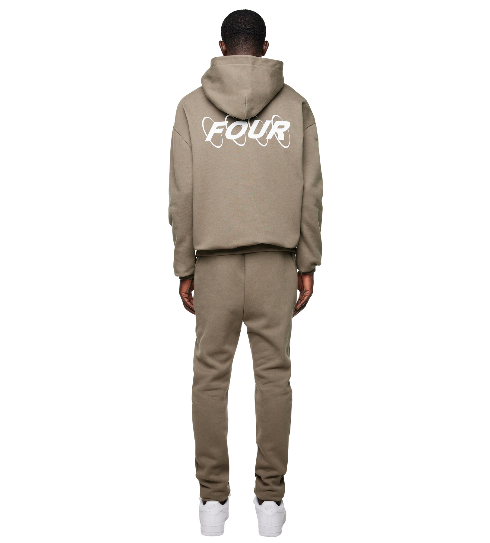 A heavyweight 330 GSM fleece hoodie designed in an oversized silhouette, combining relaxed comfort with elevated FOUR identity. The bungee cord tone gives the piece a refined, earthy aesthetic, while the small circles logo on the chest offers subtle branding. On the back, the iconic large circles logo defines the hoodie with a bold yet clean signature look. Finished with a classic hood and kangaroo pocket for everyday wear.